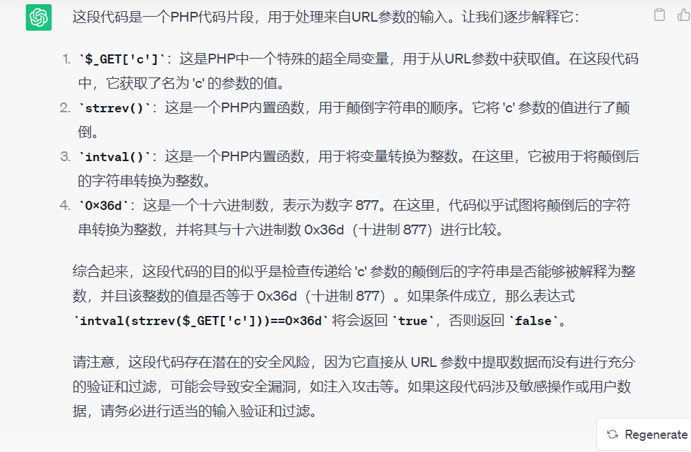 先看intval(strrev($_GET['c']))==0x36d,看看chatgpt怎么说